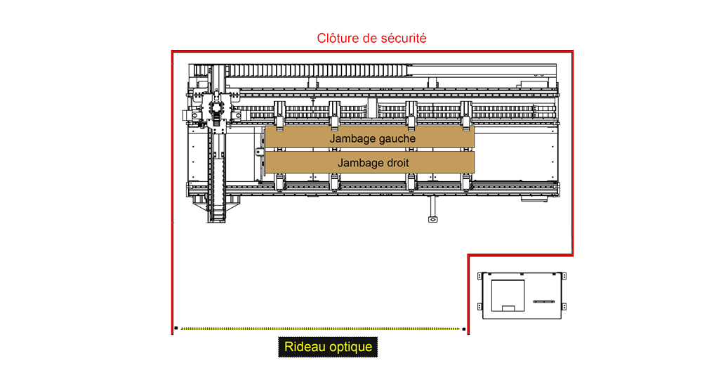 • Clôture de protection sur 3 côtés avec rideau optique à l’avant.