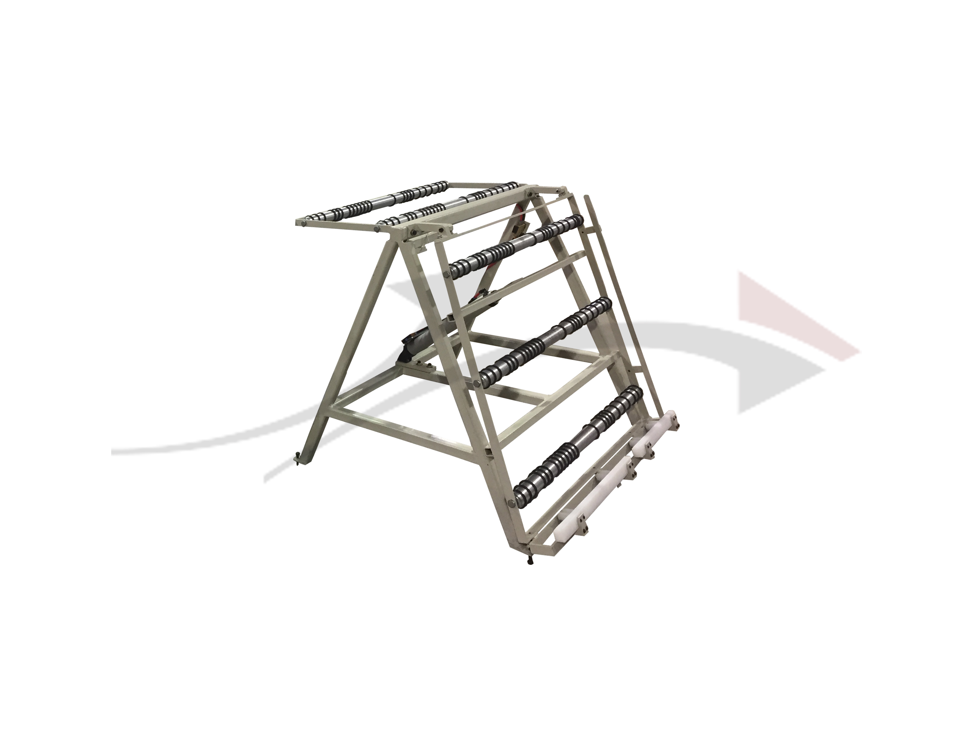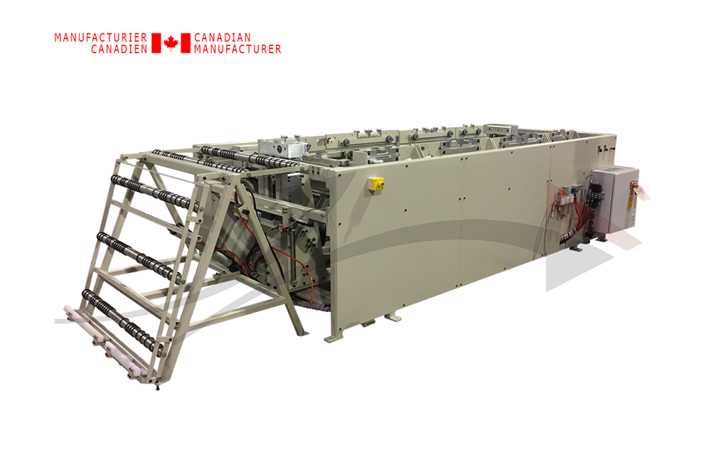 Chargeur ou déchargeur vertical, action manuel, permettant de coucher une porte (slab) sur une table de travail, station d'assemblage ou machine à porte. Le 'Flip' horizontal est actionné manuellement mais la mouvement est pneumatique.